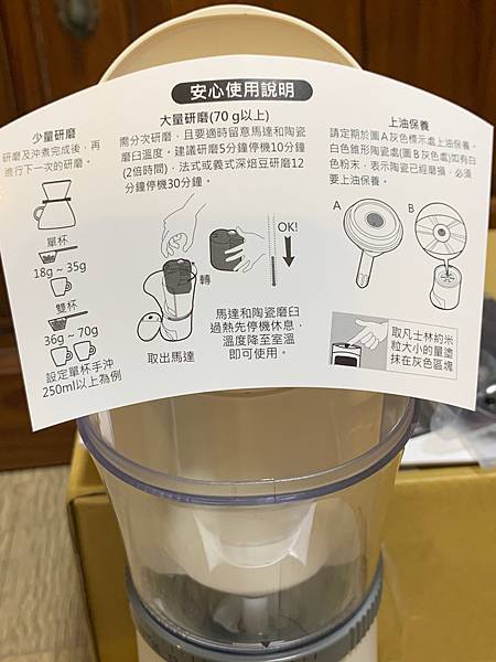 在手搖磨豆機與電動磨豆機之間,最終選擇了電動的,因為想說家人要用的時候會比較方便。